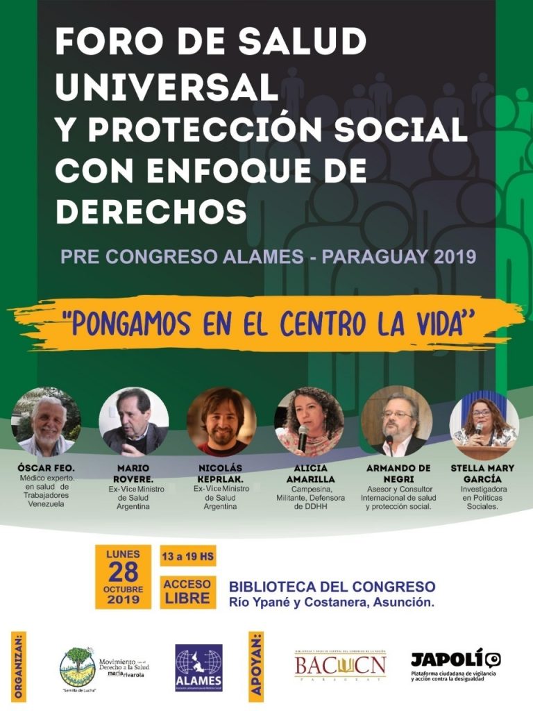 Transmisión en vivo vía Facebook live del Foro de Salud Universal y Protección Social. 28 de octubre desde las 13hs facebook.com/ALAMESParaguay#ForoSaludParaguay2019