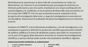 Compartimos pronunciamiento de organizaciones de la sociedad civil, organizaciones no gubernamentales y redes que integran la Asociación de ONGs del Paraguay POJOAJU con relación a decisiones del Consejo Directivo del Consejo Nacional de Ciencia y Tecnología COMUNICADO A LA OPINIÓN PÚBLICA Los representantes de las organizaciones de la sociedad civil ...